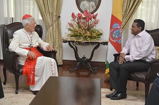 Le Cardinal Maurice Piat et le président Danny Faure ont surtout discuté des moyens pour assurer le bien-être et l’épanouissement des institutions telles la société et la famille.