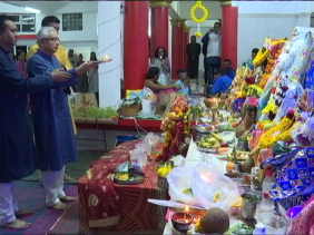 La 7ème nuit de la Navratri était dédiée hier, le mercredi 09 octobre 2024 à la manifestation de Aadi Shakti. Elle est vénérée pour la protection et la force, elle qui détruit l'ignorance et l'obscurité. Dans les temples, des prières ont été récitées tout au long de cette période. Le Premier ministre, Pravind Kumar Jugnauth, a assisté aux prières et participé aux rituels. Il s'est rendu dans des temples de la région de Saint-Pierre.