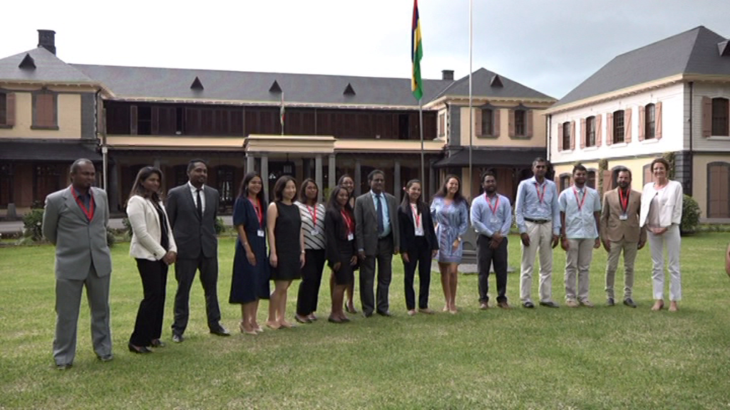 Les 15 finalistes du Challenge Startupper de l'année 2018 - 2019 ont rencontré le président de la République par Intérim, Barlen Vyapooree cet après - midi à la State House. Le but de ce concours est d'encourager les jeunes à créer leurs propres entreprises et de contribuer au développement socio-économique du pays. Ce concours est organisé par Total Mauritius et il est sous le patronage du président de la République par Intérim.
